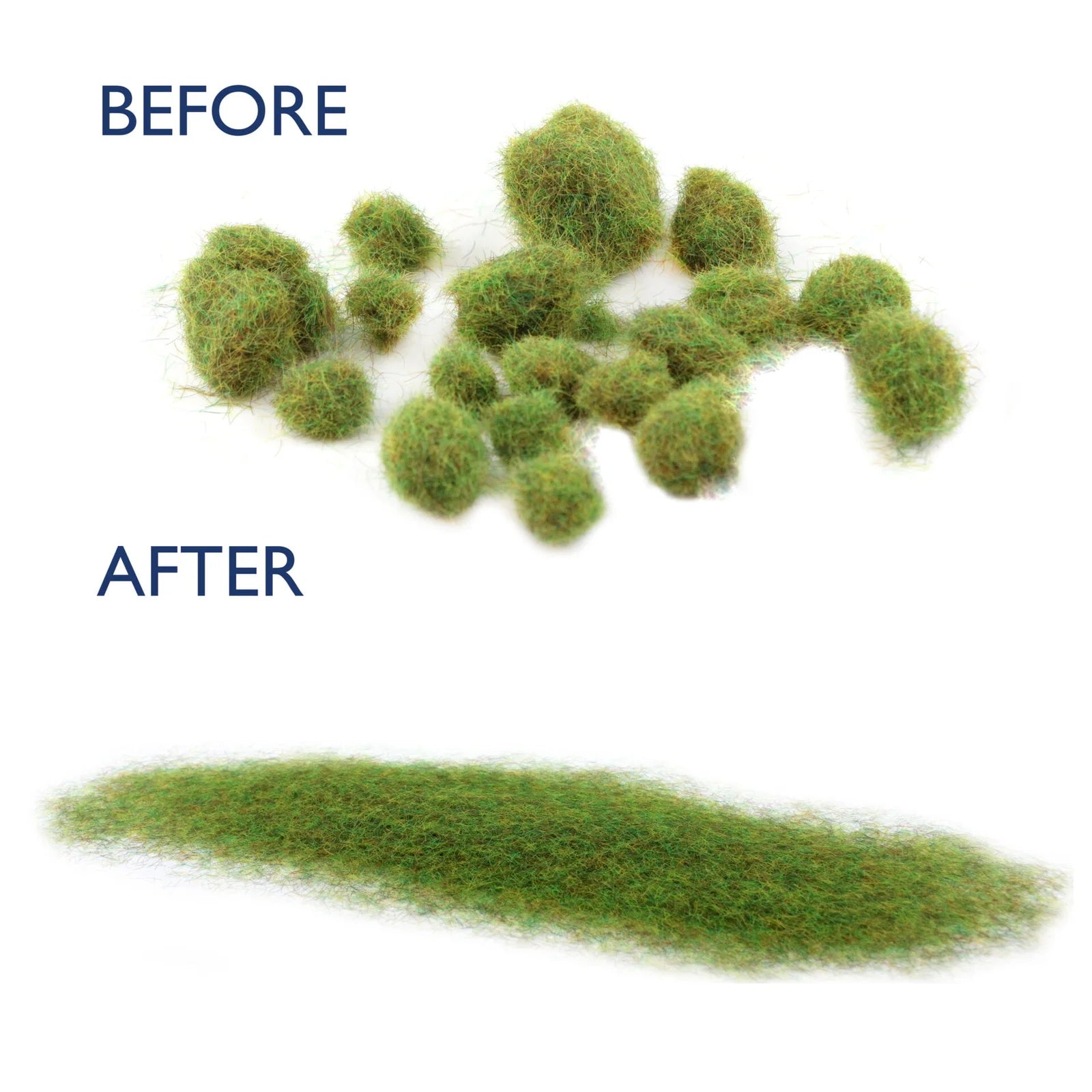 This has been designed to get rid of the 4 & 6mm balls that form. Simply load the D-Baller tool up and shake away the balls. The end result is a fluffy pile ready for your WWS Pro Grass Applicators
